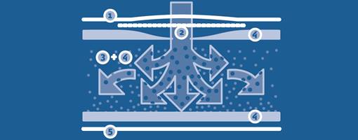 Sorgt für optimale Urin-Absorption und -Transport bis zum Superabsorber-Pulver im Innern des Produkts.